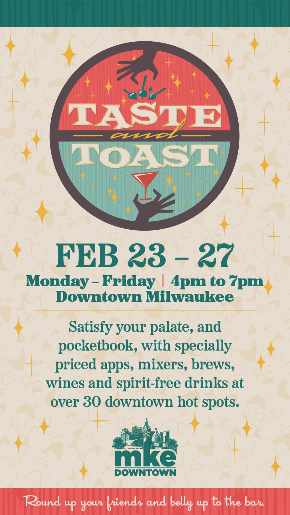 Join us every day this week for Taste & Toast! 4pm-7pm, Monday through Friday