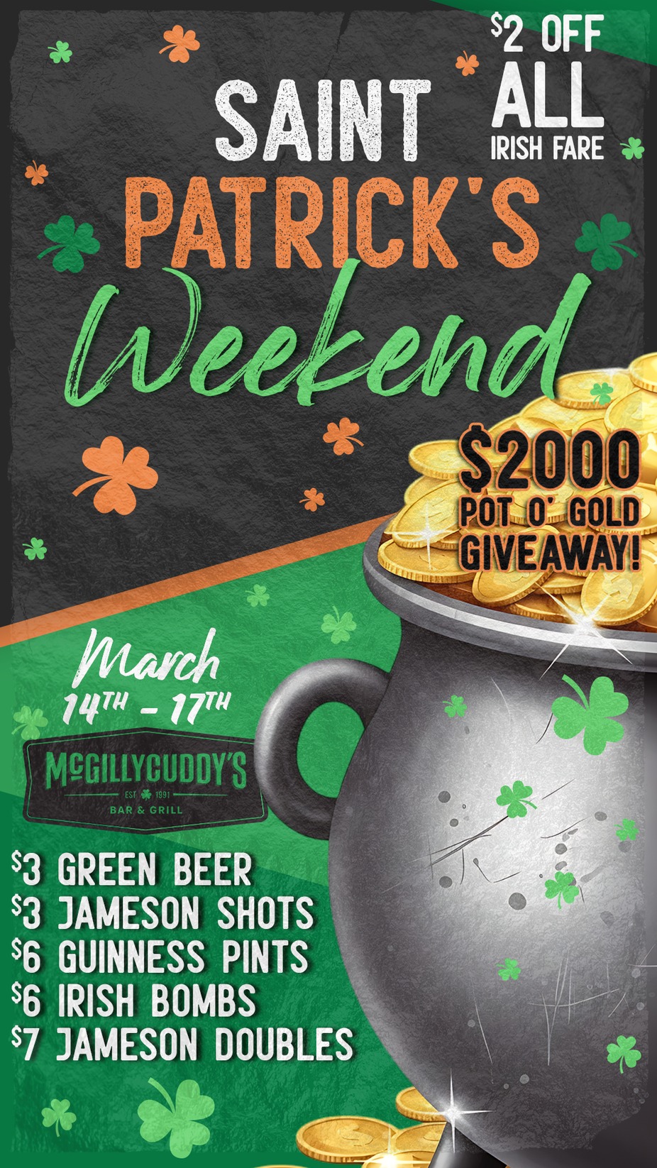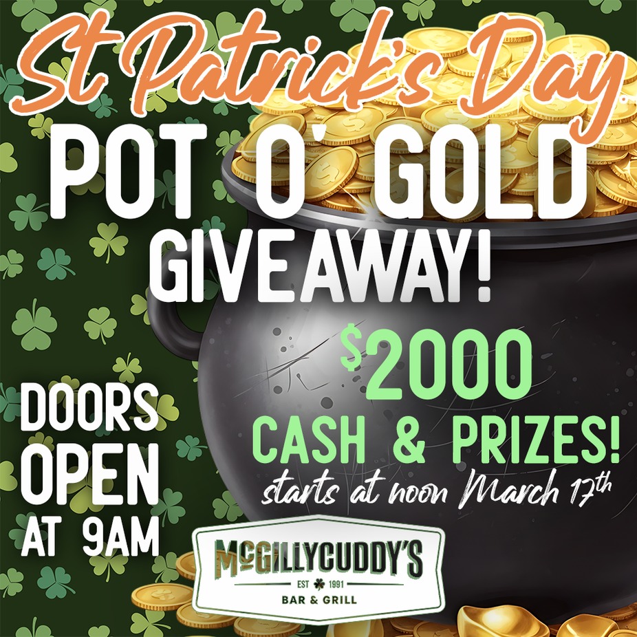 Join us on St. Patrick's Day for our Pot O' Gold Giveaway with $2,000 Cash & Prizes!